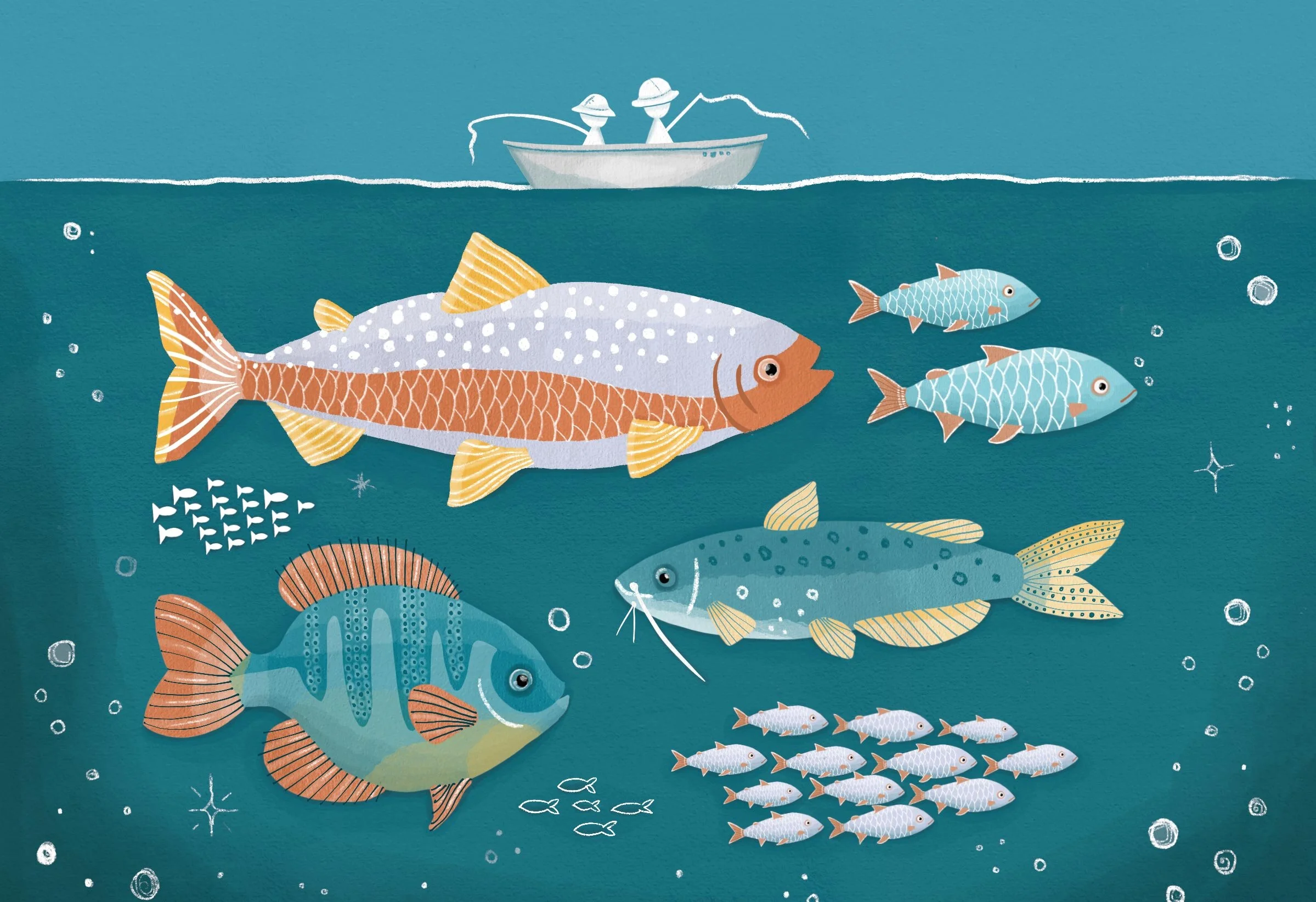 Illustrations and infographics created for 50 Creative Projects to Inspire Curious Anglers, Fishing Activity Book for Kids. Author David Lisi. Book design Jane Archer. Published by Rockridge Press.